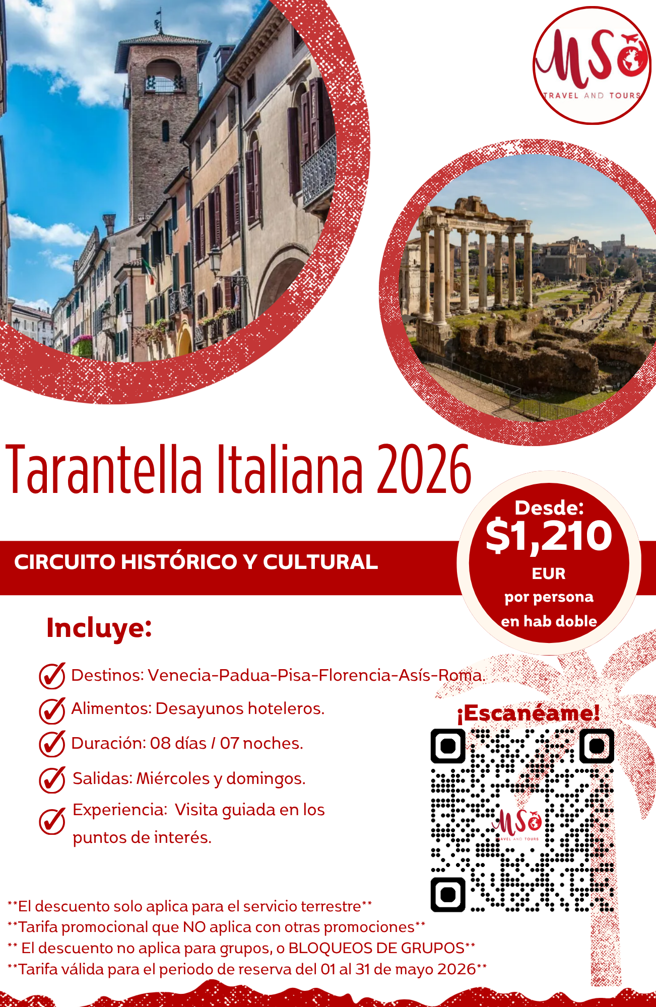 **Tarifa válida para el periodo de reserva del 01 al 31 de mayo 2026**