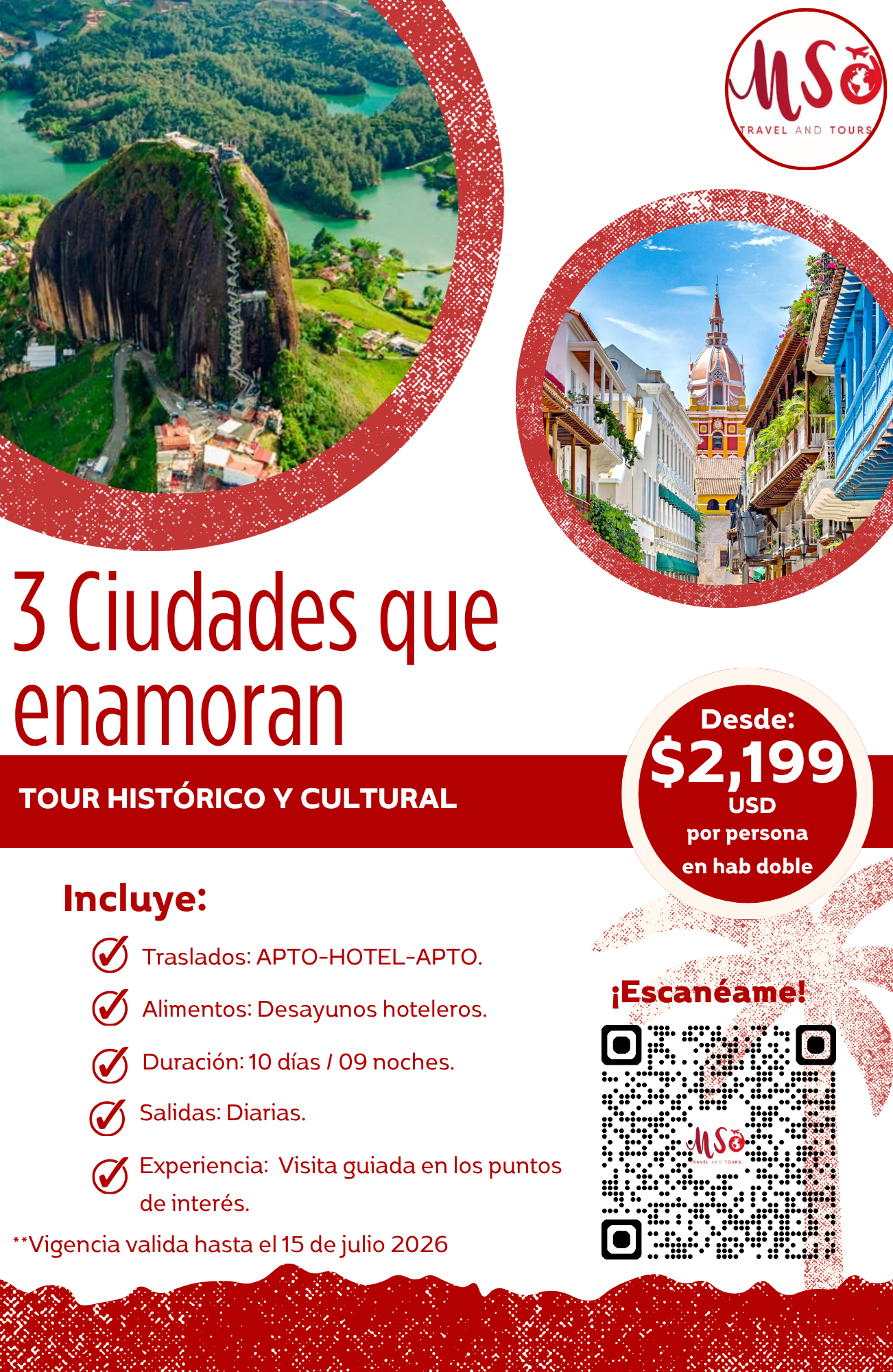 No incluye: Impuesto de muelle (7 USD aprox), ni seguro de asistencia (5 USD aprox) ni actividades opcionales, consumos no mencionados, servicio de toallas (se sugiere llevar desde Cartagena).